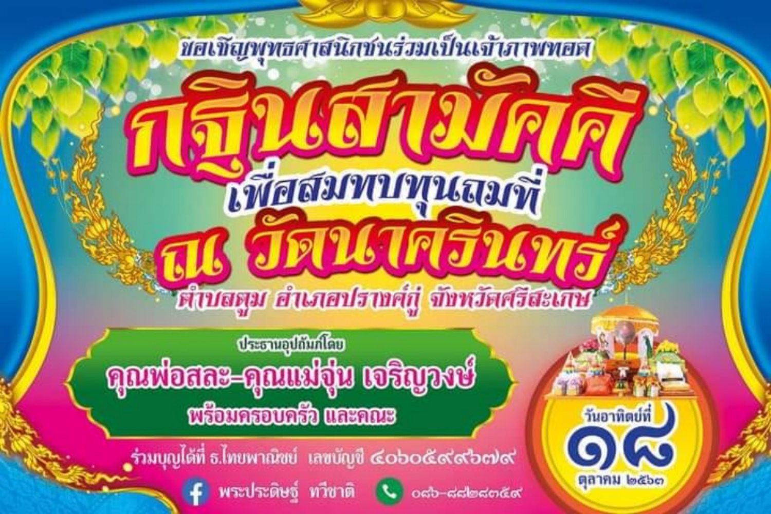 ติดต่อประสานงานวัดนาครินทร์ ๐๙๓-๒๒๔-๙๒๙๙, ๐๘๖-๘๘๒-๘๓๕๙